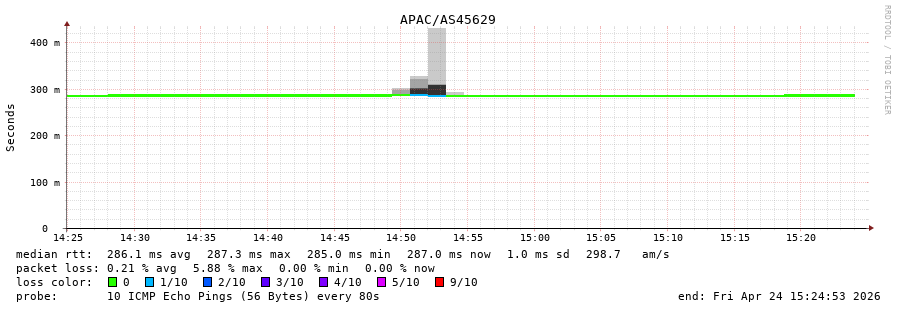 37. Median RTT 0.287 seconds