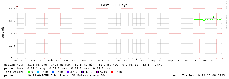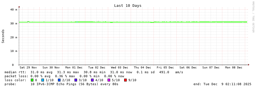 traceroute to 2001:b68:d::28 (2001:b68:d::28), 30 hops max, 80 byte packets - Generated at 2025-12-07 15:00:01