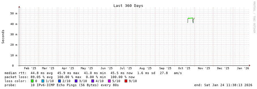 traceroute to 2a02:2f05:2113:7f00:220:4aff:fee0:220f (2a02:2f05:2113:7f00:220:4aff:fee0:220f), 30 hops max, 80 byte packets - Generated at 2026-01-24 11:30:01