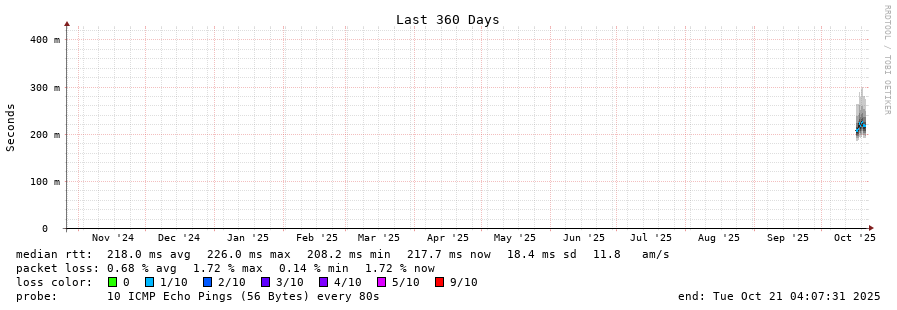traceroute to 138.122.76.8 (138.122.76.8), 30 hops max, 60 byte packets - Generated at 2025-10-21 04:00:01