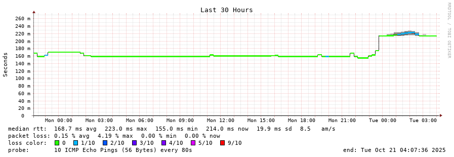 traceroute to 130.250.228.10 (130.250.228.10), 30 hops max, 60 byte packets - Generated at 2025-10-21 04:00:01