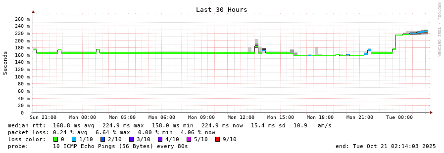 traceroute to 190.121.129.86 (190.121.129.86), 30 hops max, 60 byte packets - Generated at 2025-10-20 21:30:01